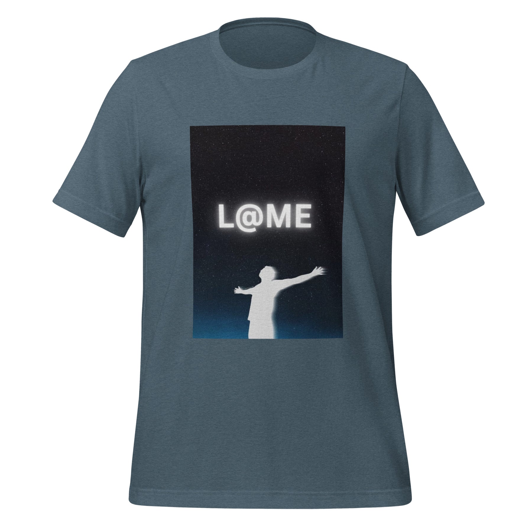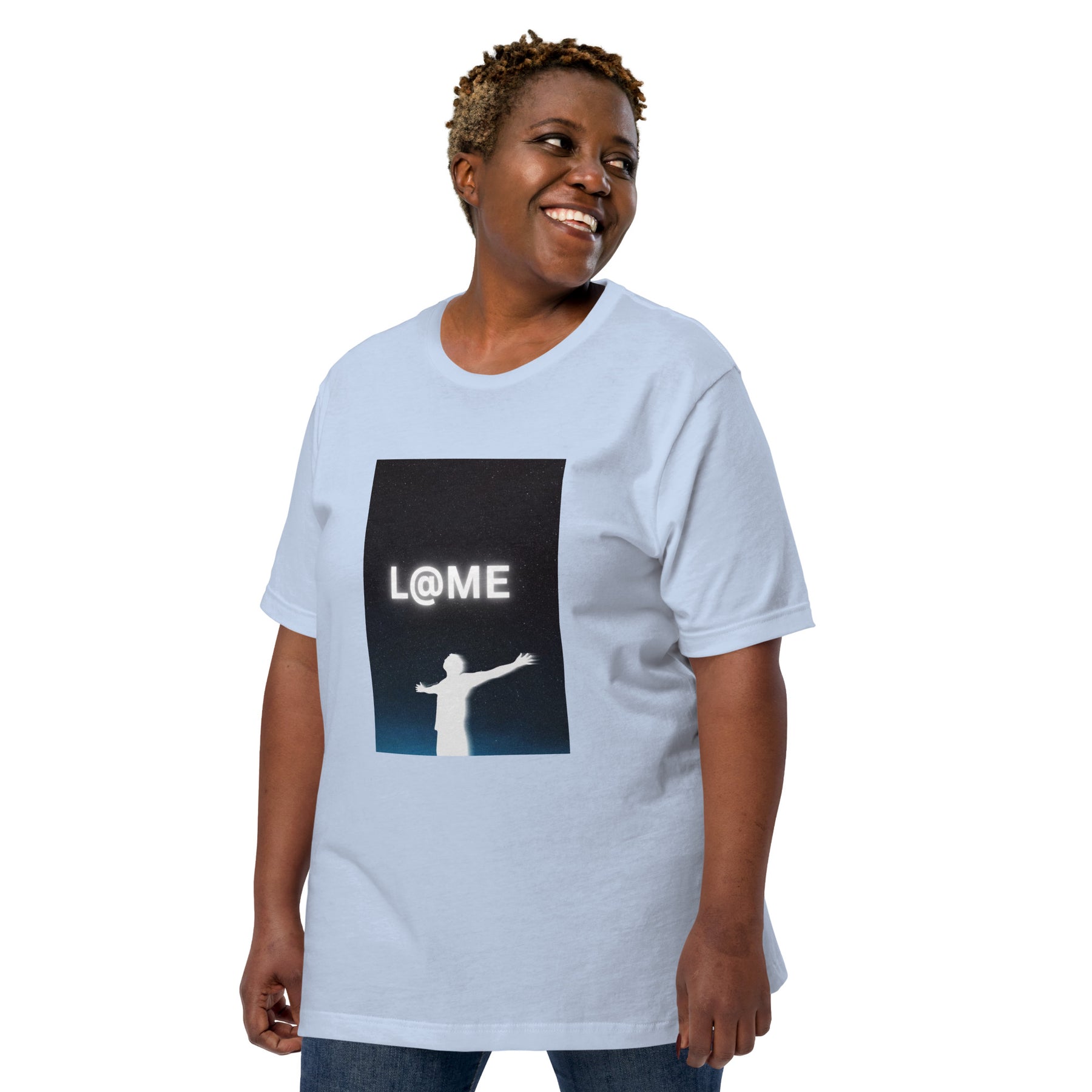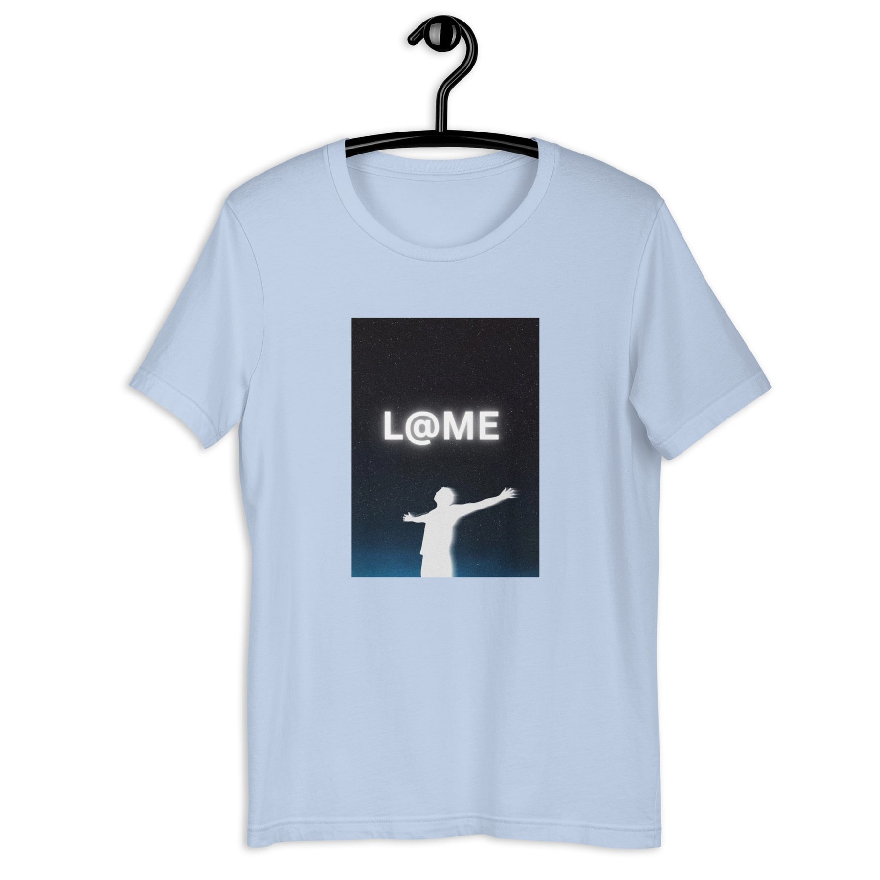 Unisex t-shirt featuring a luminous white silhouette under a starry sky with the L@ME logo.